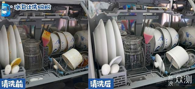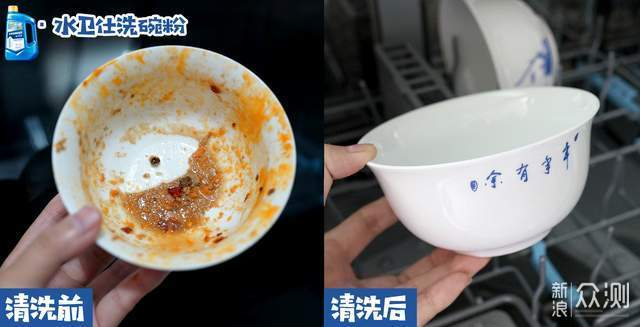 放了一天一夜的火锅蘸料碗,碗底已经结上厚厚的污渍块,洗碗机把碗心碗壁都洗的很干净。