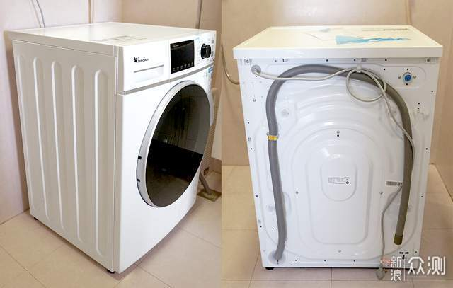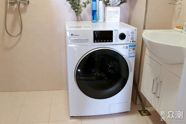 整机极地白的配色简洁大气,595X560X850mm的外围尺寸刚刚好,放在浴室里清清爽爽的。操作区是一块超大触控屏,开启后各种洗涤状态一目了然,老人也能看得清。