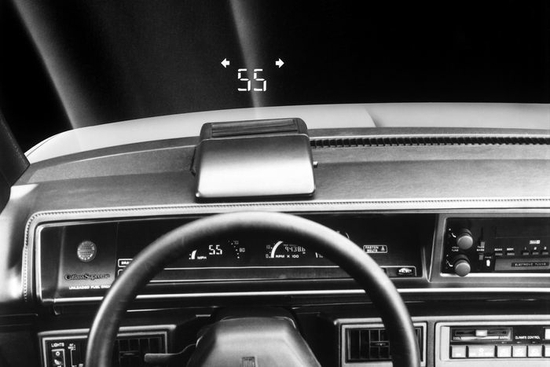 ▲1988 款通用 Oldsmobile Cutlass 上的 HUD 可提供的信息十分有限,图片来自:通用汽车