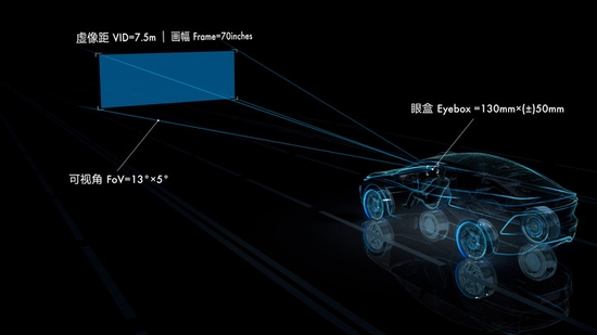 飞凡 R7 的视觉增强 AR-HUD 平视系统拥有 13°*5°的超广视角(据了解,这也是目前全球量产车型最大视场角),可以形成一个位于 7.5 米外的画面。
