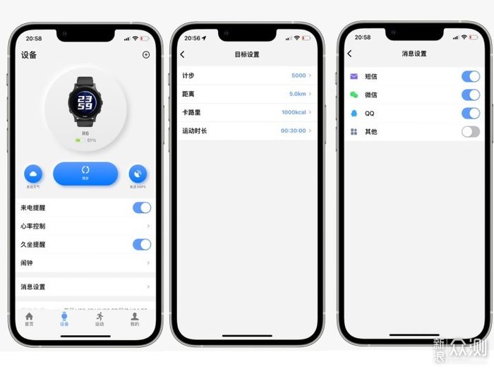 手表默认提示手机上的短信、微信和QQ信息,如果选定“其他”,则会提示所有获得通知权限的信息。