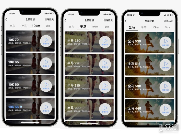 训练计划主要针对全马、半马、10公里、5公里等,每次训练都会被记录,通过查看训练历史,可以总结过去一段时间的训练成效。