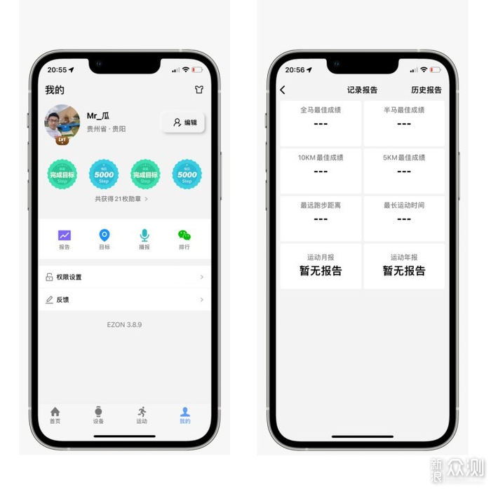 记录报告更像一份成绩单,默认记录各个项目最好成绩,还有月报和年报,晒朋友圈很合适!