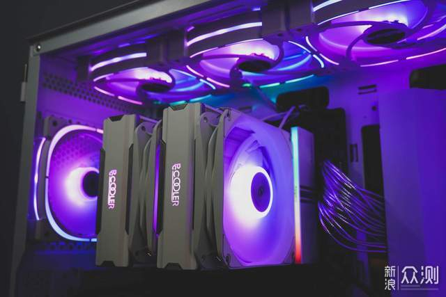 双塔辅助的两把风扇尽职尽责,12cm全新模具形状讨喜,支持ARGB灯效,FDB轴承静卧其中,带来静音BUFF。