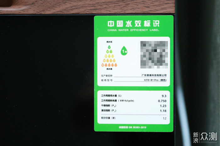 在每台洗碗机上都会贴有一张绿色的小贴纸《中国水效标识》,为用户直观展示了机器的水效等级、干燥指数、清洁指数、工作周期用水量和工作周期耗电量等五个指标。