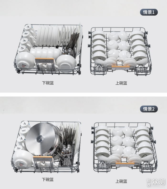 12套容量,双层碗篮,洗、烘、消、存等功能同样是应有尽有;75℃高温持续洗涤20分钟,适合宝宝餐具和油污较重的餐具;预设8种清洗模式,支持热风+紫外线+等离子功能长效保存,是一台性价比不错的机器。
