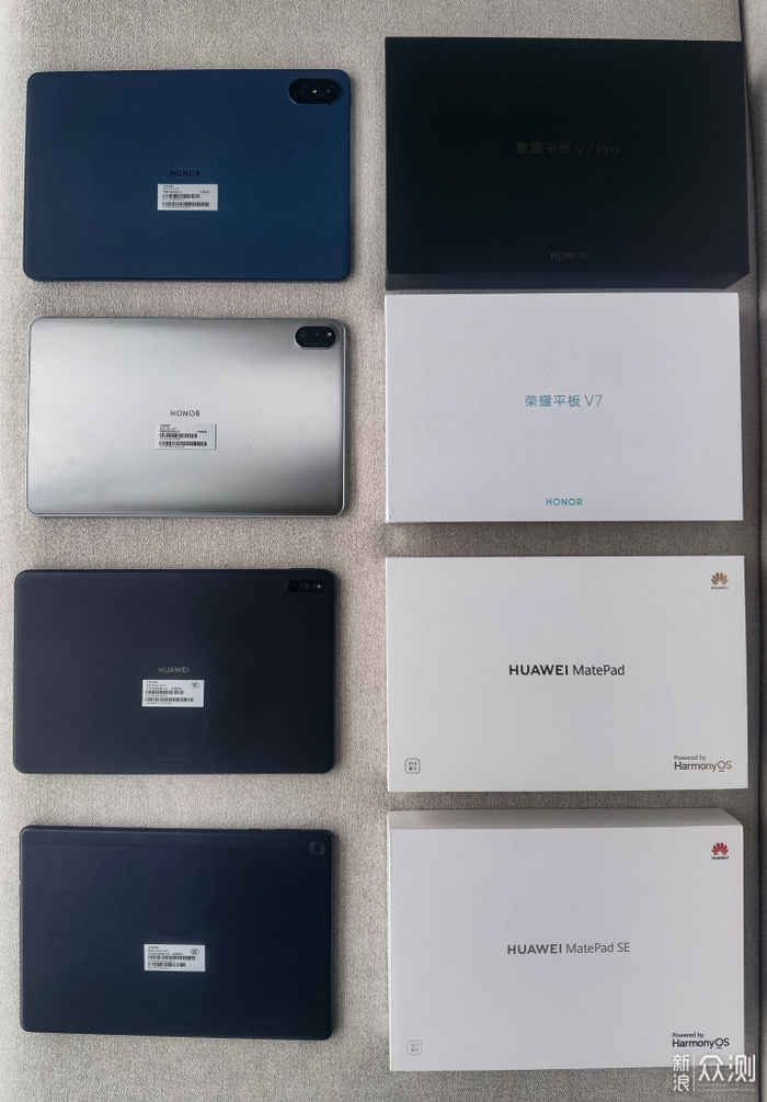 于是乎一把拿下了华为MatePad 10.4悦动版、华为MatePad SE、荣耀V7 Pro和荣耀V7来做个对比。使用了一周左右后,有了些自己的购买想法,把自己比较在意的一些方面罗列如下,供大家购买前参考。