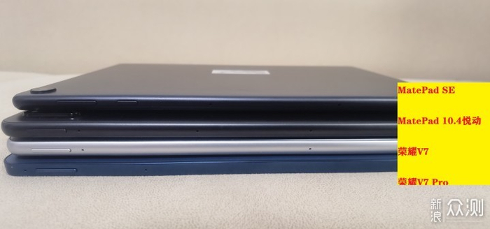 没有对比就没有伤害(第1遍)!四款Pad依次拿在手里过一遍,特别明显的印证了上面那上的排序:V7 Pro > V7 = MatePad 10.4悦动版 > MatePad SE。