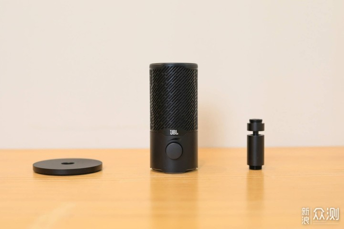 ▲正面JBL LOGO下方是个大旋钮,可以按、也可以转,通过按、转能够调节录音和监听的音量大小。这个按钮很有质感,按下去很干脆,转动的时候还有清晰的档位。