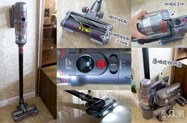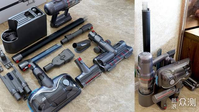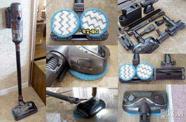 配备的刷头及配件也非常丰富,有双滚电动地刷、旋转擦地刷、电动除螨刷、二合一宽嘴刷、照明长扁吸以及软羽刷,适用于整屋清洁,对比洗地机和扫地机器人更有优势。