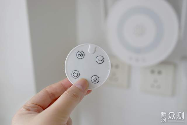 这是遥控器,远距离操控更方便,平时收纳可以把它磁吸到风扇中间的logo处,这样就不怕丢三落四找不到遥控器了!每一处细节都考虑到了,棒!