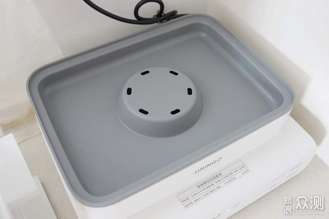水箱上面这层灰色的就是接汁盘,蒸煮过程中食物留的汁水和蒸汽水都汇集在这里,用完取出随手倒掉就可以。这样水箱里干净的水和接汁盘蒸后的水是分开流动的,更卫生,拿起清洁也方便。