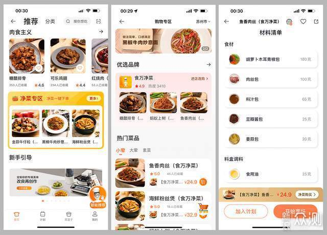 操作极其简单省心,在APP里有净菜一键购买功能,想吃啥直接下单,配菜佐料都给精准配比好了,顺丰直送到家。