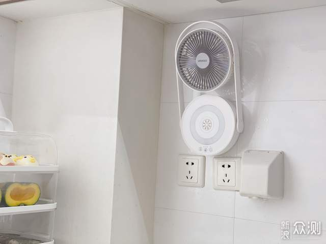 随机有赠送两个隐藏挂钩,我在厨房和卫生间各贴了一个,挂到风扇背面预留好的凹槽处即可,非常稳固。