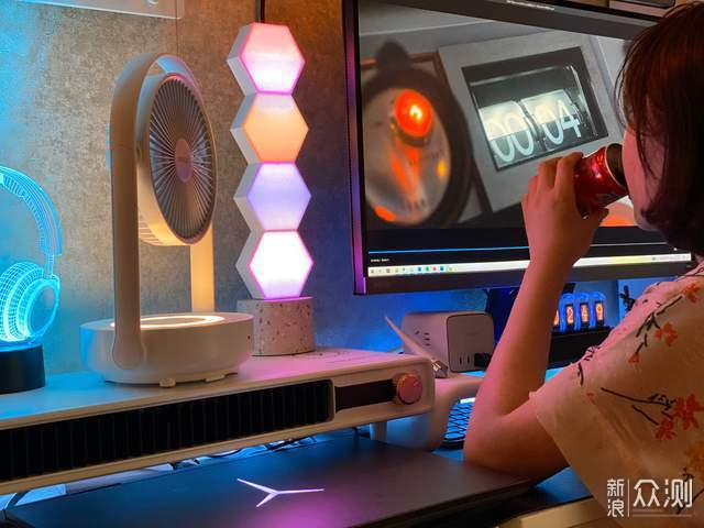 晚上睡觉的时候开着夜灯也不刺眼,而且立在桌面用也很稳。风扇可以多角度调节位置(风扇左右悬浮摇头大到90°,而且上面的风扇头可以大范围翻转,站着也能吹)。