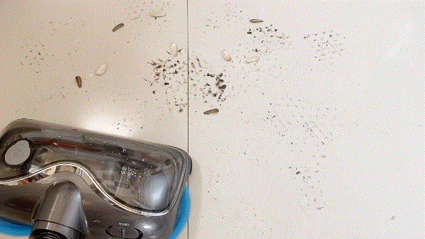 动图可以看到它的边缘贴合度非常可!吸附在玻璃上贼稳,每一步都是实打实的擦拭,所以擦的特别干净。尤其湿擦模式下,我得用两只手才能给它扒下来...