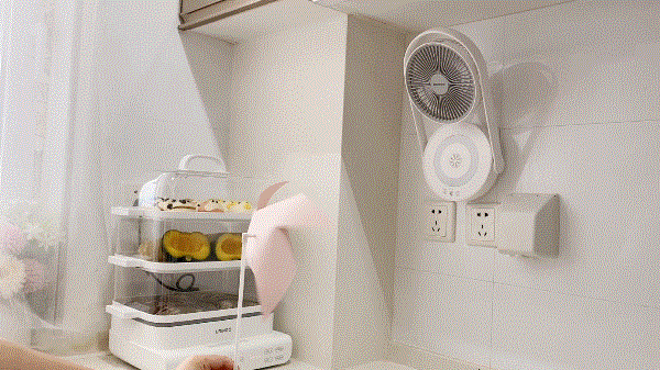 一共有4档风力调节,别看小小一个,风力还是很带劲的,瞅瞅这送风距离,很可!这个夏天在厨房做饭再不用担心汗流浃背了。还有女生夏天化妆时经常闷一脑袋汗,我把它挂在卫生间,以后就可以清爽上妆啦~
