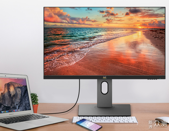 1、本篇中唯一一款24英寸4K显示器,同样三面极窄边框,外观出色,支架功能全;
