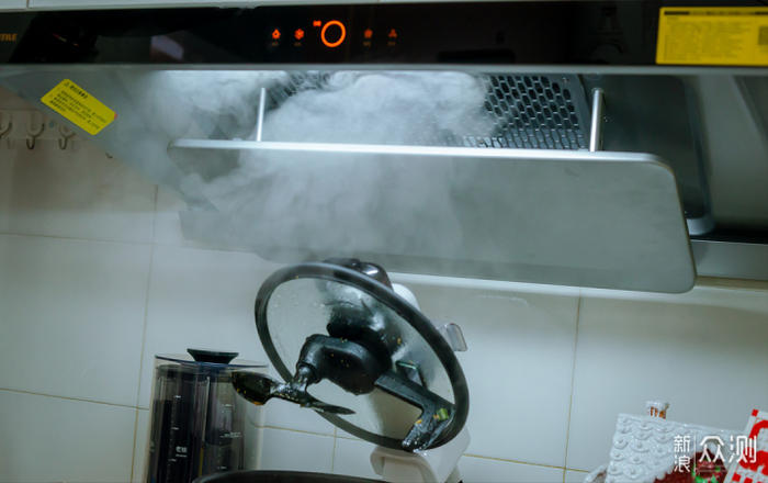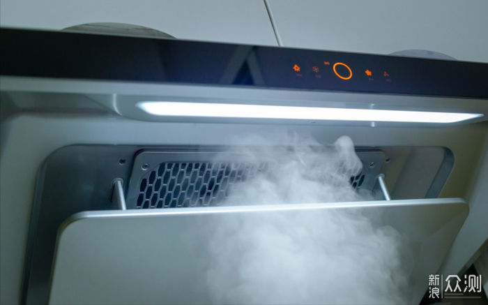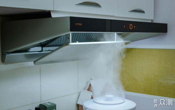 在实际测试过程中,为了更明显的演示吸烟效果,主要采用了水汽来测试,可以比较清晰的看到排烟的路径。而真正的油烟往往是一些青色或者透明无色的,不易观察。而且水汽比起油烟较重,如果油烟机可以将比较重的水汽排净的话,排油烟也是没有问题的。