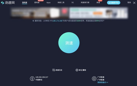 ▲ 广东电信宽带测速平台