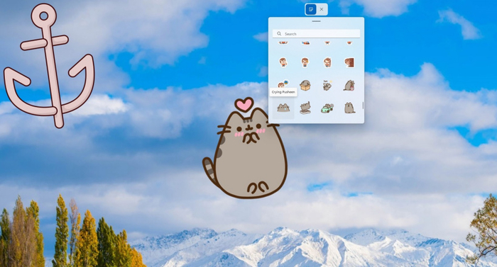 顾名思义,Windows 11 的贴纸功能允许用户写一份贴纸并将其“粘”到桌面上。此外,Windows 剪贴板或表情符号面板已经更新,内置了各种新内容,例如动物甚至动漫人物的贴纸。你可以将这种贴纸“粘”桌面壁纸上,哪怕你更换壁纸也不会消失。