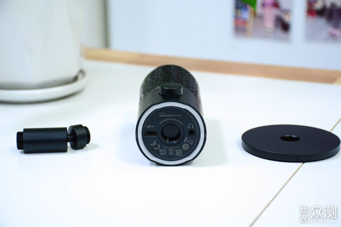 外观上看,JBL Quantum Stream麦克风主体采用了金属圈+铁网的组合,整体效果非常硬朗,质感也比较出色。麦克风底部支架采用优质金属结构,结实耐用,一定程度提升了麦克风主机的档次;并且底座的下面预留了平整的橡胶脚贴,摩擦力很大,可以确保底座在桌面上稳固放置。另外,麦克风还支持无极角度调节,我们可以依据实际使用需要对其进行调整。