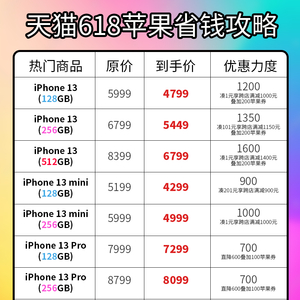 优惠力度已到位,天猫618买 iPhone 13 直减1600