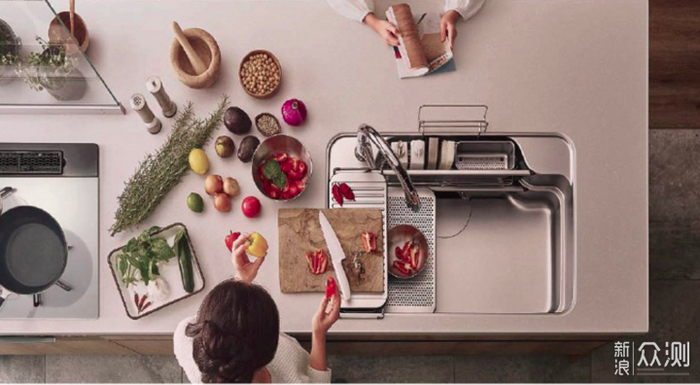 说配件就不得不说日本骊住,这是我见过配件最多的水槽品牌没有之一,原因大家也懂了,日本房子小厨房小,需要一个位置处理多种事情,切菜、洗菜等全部都在这上面完成,因此各种配件真的很多,如果小户型,尽量选择骊住这种类型的产品。