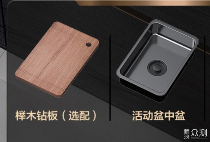 配件指的是可以放在水槽上面的一些产品,如沥水架子、置物架、切菜板等等。