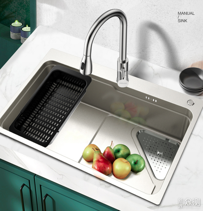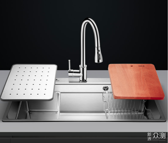 欧琳这款800*500的冲压式的大单槽也是我比较推荐的,很好的设计了附件可以在水草上平移的设计,层是两层平移,这一点是非常符合喜欢日式风格的群体的,附近有三个,滤水篮、滤水板与盆中盘,都是非常实用的设计,额外可以购买榉木案板,可以实现盆中盘+滤水篮在下面,滤水板与案板在上面的操作模式,拉丝工艺+图层工艺,带龙头目前价格2099元,618价格好的话,这款值得冲!