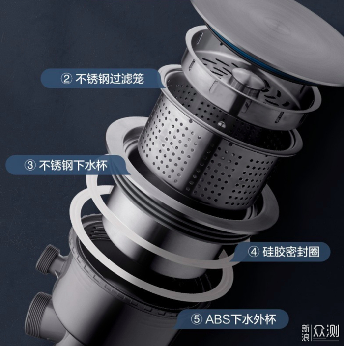 还有一个要注意的点就是,下水内部的可拆卸清洗的部件,最好都是金属不锈钢的为妙,相对会比塑料的更加耐用,多次清洁也不会有啥问题,丢入洗碗机也是随便的事情。