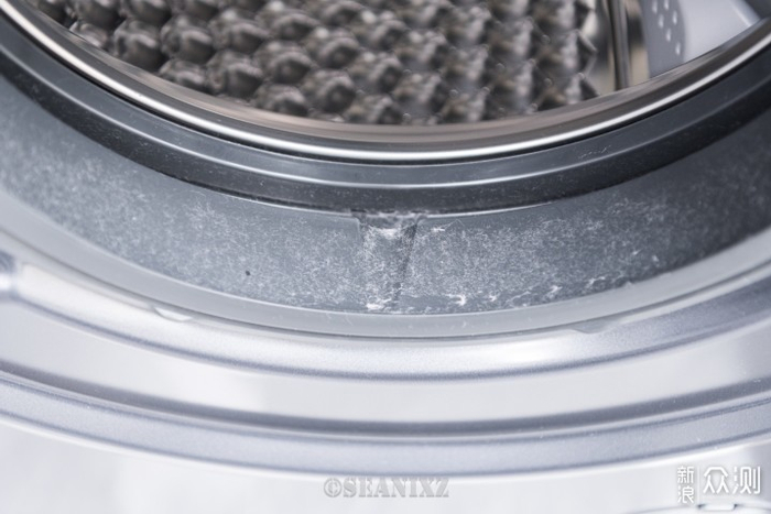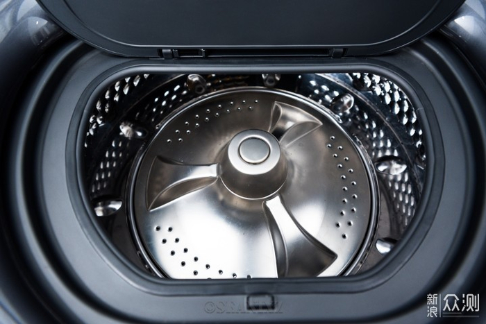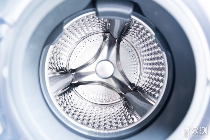 可以看到鳞片状的“蜂巢水晶结构”内筒,一体冲压成型,有较好的工艺细节,洗烘不会勾丝,可以避免对衣物的损伤。