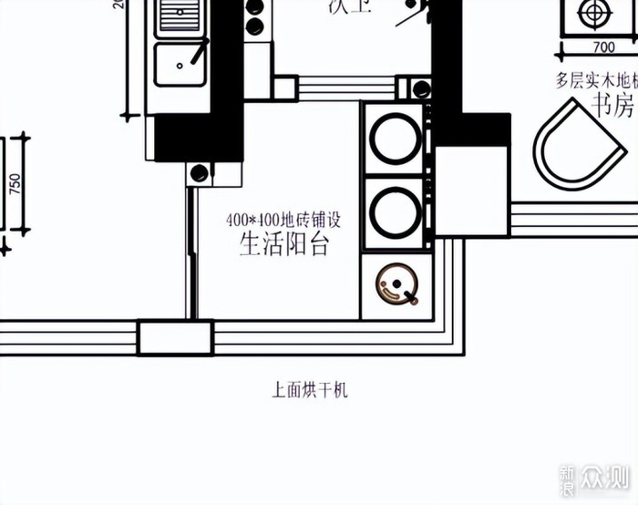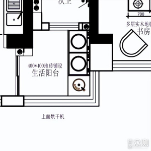 目前的设计方案如图,阳台空间不能并排放两台,如果要利用上的话就只能像上图这样了,叠放的形式能搞定干衣机和洗衣机,但母婴洗衣机没地方安排了,对于有娃家庭这种“刚需”确实没法妥协。
