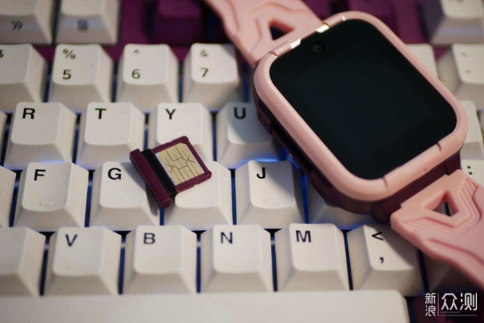 打开盒子改, 360儿童电话手表10X的正面映入眼帘,在表盘的正面贴了一张温馨提示贴纸。表盘的右边是开关机按键,左边是Nano SIM卡插槽。