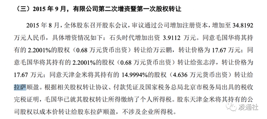 第一步:天津金米将14.9994%的股权转让给拉萨顺盈