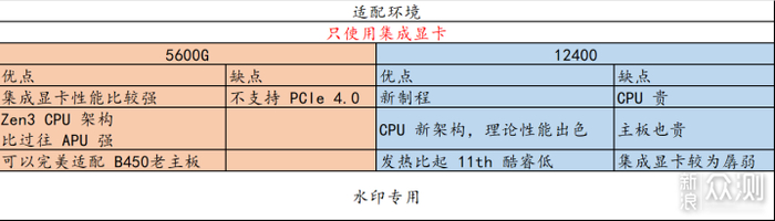 ▲ 如果需要添置的是集成显卡平台,并且以后不考虑购买显卡的话,那么 5600G 与 12400 是目前唯二的优选,他们的优缺点如图所示,预算有限的情况下,想要更为出色的游戏效果,推荐考虑 APU 5600G 平台。
