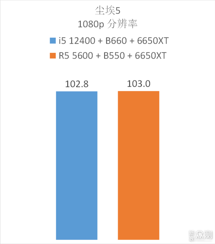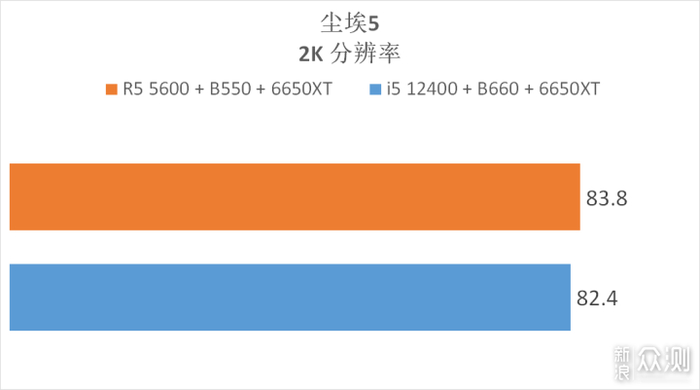 ▲ 尘埃5 测试里,5600 平台与 12400 平台基本上在同一水平线上,两者差别基本上可以视作测试波动误差。