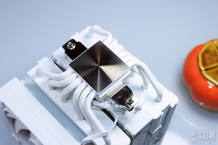 ▲ 纯铜底座镀镍防锈,并且铣出了微凸的结构,能够增大与 5600 / 12400 等 CPU 表面的接触面积。底座与热管之间采用焊接方式。