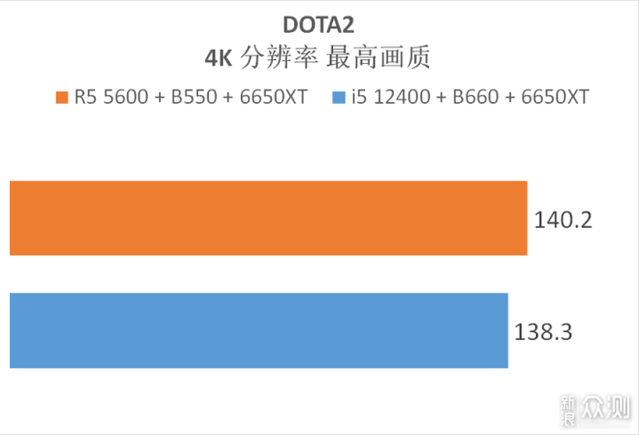 ▲ DOTA2 项目上,得益于更大的 L3,5600 平台的平均 FPS,稍微领先于 12400,如果纯玩网游,那么考虑 5600 平台吧,性价比更高。