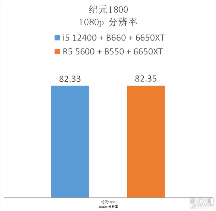 ▲ 《纪元 1800》的测试结果汇总,表明无论是 5600 平台还是 12400 平台,两者在这游戏里基本上处于同一水平线上,实际游戏并不会有明显可感知的差别。