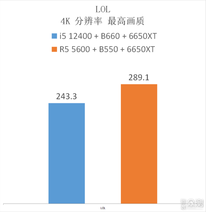 ▲ 英雄联盟 LOL 作为一款国民级游戏,虽然它对于硬件配置要求不会太高,但是一旦扩展到 4K 分辨率级别,还是非常吃 CPU 的 L3 ,拥有更大的 L3 的 5600 平台在 LOL 的平均流畅度高于 12400 平台。