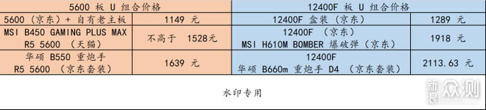 12400F 这边就比较尴尬了,就算采用一线中最为便宜的 msi H610 爆破弹,套装也需 1918元,如果搭配华硕 B660 重炮手 D4 的话,就要 2114 元了。两边的同级别对比,价格差距在 400~500 左右,也就是一块 3T CMR 机械硬盘的价格了。