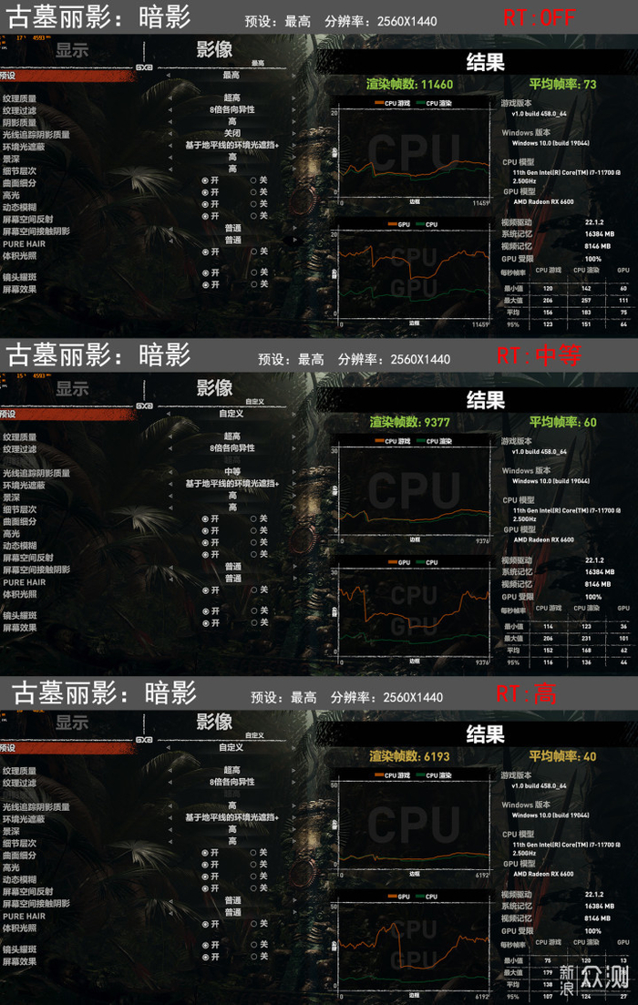 《古墓丽影:暗影》2k分辨率下的最高预设,不开光追特效完全没问题,达到流畅的73fps,开启中等的光追特效后,帧数降至60fps;开启高的光追特效后,帧数降至40fps。