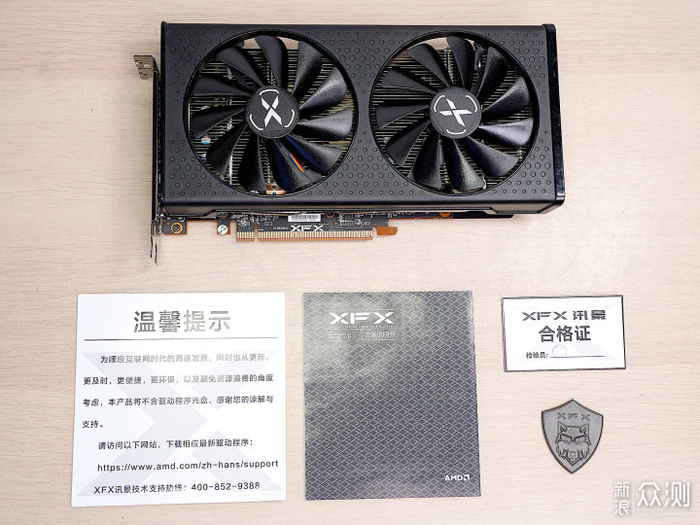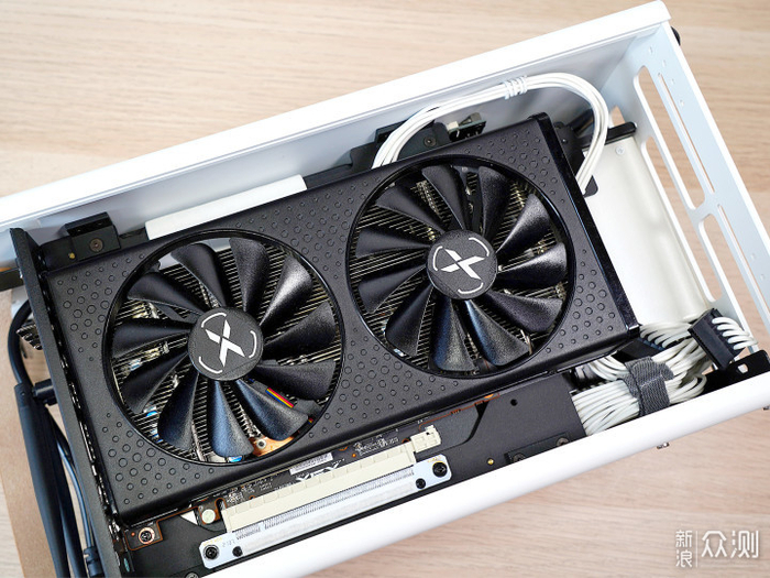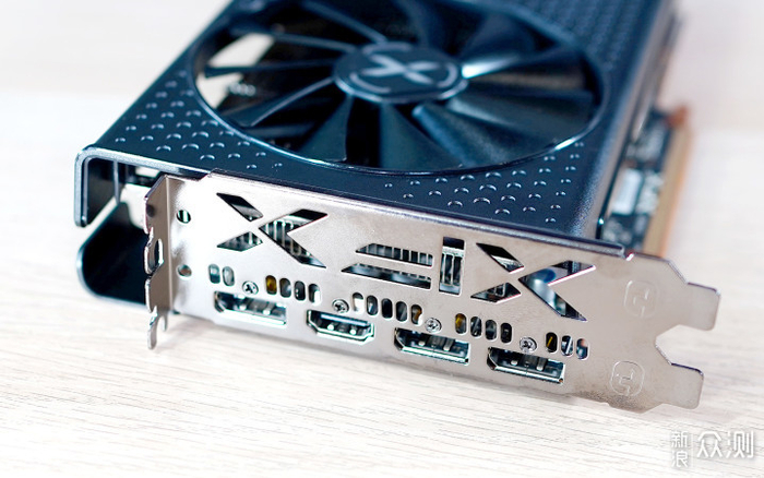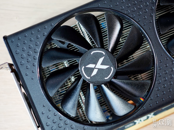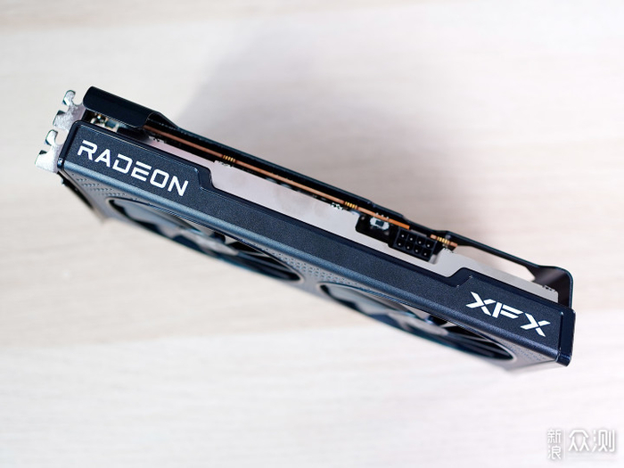 厚度是标准双槽显卡,侧面有Radeon 和XFX的LOGO,也是无RGB的。