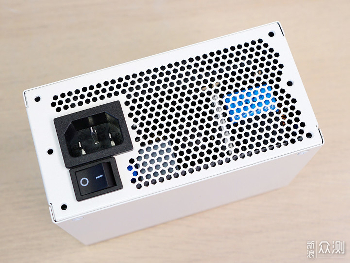 电源尺寸为100x125x63.5mm的标准SFX电源,白金版的拓扑结构为主动式PFC + 半桥LLC谐振拓扑 + 同步整流 + DC-DC,并采用了低负载状态自动停转的9cm超薄(15mm厚)风扇,不出意外这款金牌的白色限量版也是一样的。不同的是风扇格栅采用了独特的设计。