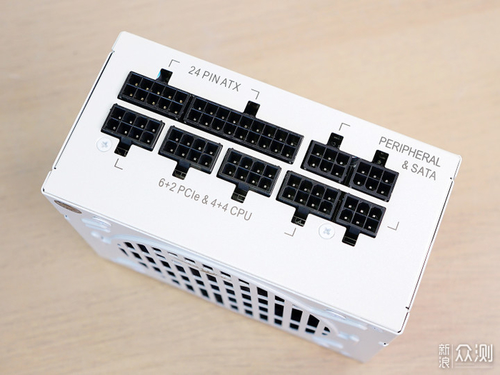 全模组接口设计,其中24pin主供电对应的模组接口是10+18pin的组合接口;8pin模组接口对应显卡的PCI-E供电接口与主板的CPU供电接口,共计有4个,可以混插;3个6pin模组接口则用于扩展SATA供电接口与D型4pin供电。