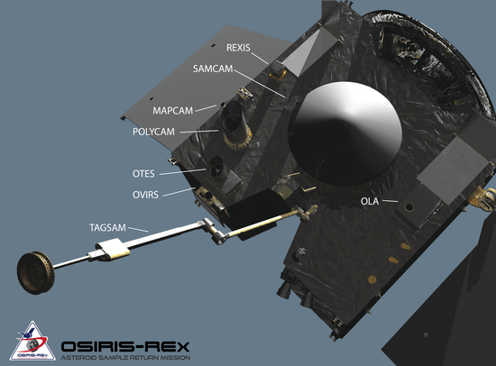 欧西里斯号携带了6台科学载荷,包括相机套件(OCAMS)、可见红外光谱仪(OVIRS)、热发射光谱仪(OTES)、风化层X射线成像光谱仪(REXIS)、激光高度计(OLA)和取样系统(TAGSAM)。