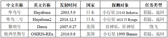 1991年,美国发射的伽利略号木星探测器对小行星951 Gaspra进行了飞越探测,使其成为第一颗被近距离观测的小行星。在此之后,美、欧、日均展开了针对小行星的深空探测任务,任务模式主要分为飞越、绕飞、撞击、着陆和返回五种。
