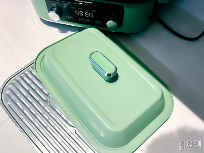 锅盖就更是我的最爱了。摩飞的餐具外观做得是真心好看。无论是清新绿、英伦红、椰奶白、轻奢蓝。做得都是那种艳而不俗的风格。很好的融入家居环境。