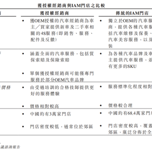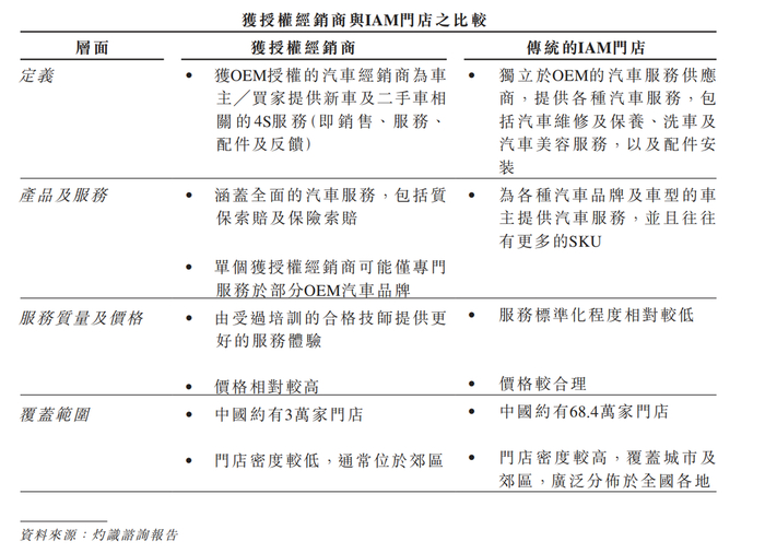 显然,服务之间的差异既是门店处理能力的差异,也源自于汽车经销体系,一类是获OEM授权的4S体系,另一类则是第三方IAM(独立售后市场)门店。